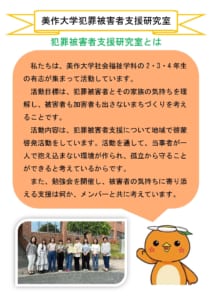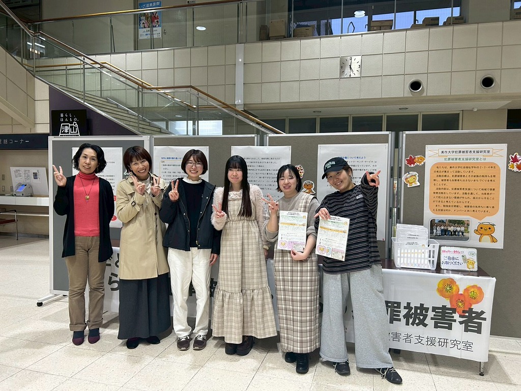11月の「犯罪被害者月間」に合わせ、11月25日(月曜)~11月28日(金曜)の間、津山市役所1階ロビーにて社会福祉学科の犯罪被害者支援活動を行うゼミ生たちが制作したパネル展示を行っています。