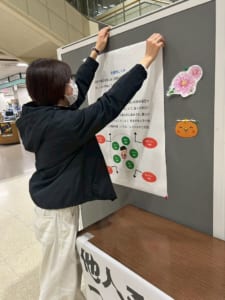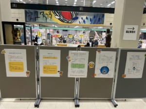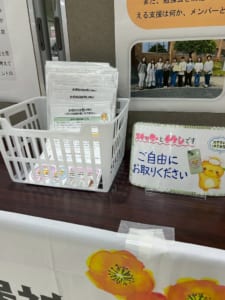今年は、パネルを見ていただいた方々にメッセージを身近に感じてほしいという思いで、チラシとステッカーを作成しました。ステッカーは、スマートフォンにも挟めるようになっていますのでぜひお手に取ってご活用ください。