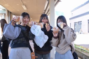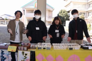 この取り組みは、社会福祉学科 薬師寺明子教授の研究室に所属するゼミ生が、障がい者福祉事業所の活動支援として学内での販売場所を提供し、利用者の方々と一緒に手作り食品や雑貨の学内販売を行っているもので、今年で12周年となります。