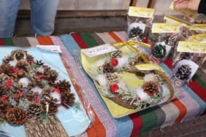 売り場にはシュトーレンやサンタの形を模したクッキー、松ぼっくりのリースやキャンドルなどクリスマスにちなんだ商品がたくさん並び、とてもかわいいと大好評でした。