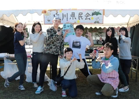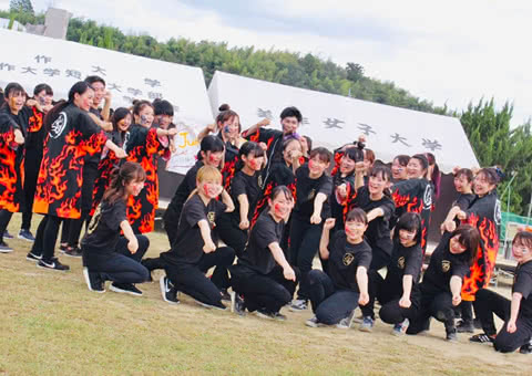 県外からも多くの学生が集まる美作大学の特色の一つとして、県人会活動があげられます。これは学生たちが自発的に始めたもので、中でも沖縄・高知・岡山の活動が活発です。 大学祭の時は郷土の踊りや料理などを披露し、毎年、今年は何をしてくれるかと学生はもとより、地域の人々からも期待されています。