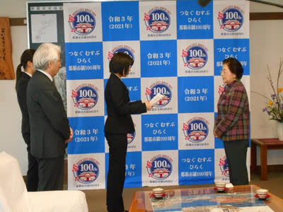 新垣さんは、首里城や沖縄県に対する思い、募金活動を始めるに至った経緯などを城間市長に伝え目録を手渡しました。