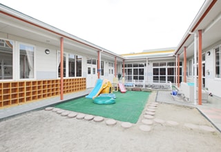 平成7年に建設した床暖房が施された新園舎の他、 隣接する美作大学には、園児も利用している大学体育館や広大なグラウンド、