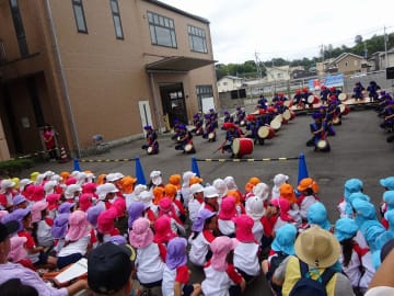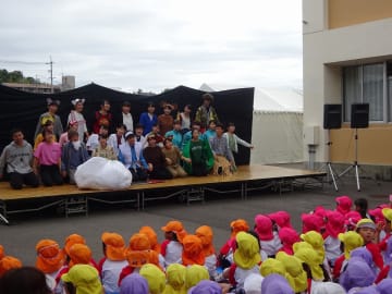10月7日(日曜日)と8日(月曜日)に美作大学白梅祭が開かれています。台風の影響で園児はオープニングに出演できず残念でしたが、本日、みんなで学内まで一緒に出かけ、エイサー・児童文化研究部の劇・なかまーずの歌等鑑賞してきました。児童文化研究部の劇は「おおきなかぶ」でしたが、桃太郎や金太郎・浦島太郎も登場し楽しい劇に歓声が上がりました。明日はアンパンマンショウーもありますし、館内は子ども達の遊びのコーナーも準備されていますので、是非皆さん足を運んでください。