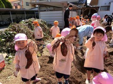 10月3日(水曜日)全園児で芋ほりをしました。今年は天候の関係からか芋ほりはできたものの不作でしたので、残念ながら持ち帰りはできませんでした。しかし、近々みんなで焼き芋パーティーを楽しみたいと思っています。