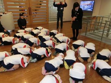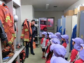 11月16日(金曜日)年長組で消防署見学と体験学習に行ってきました。車両や訓練の様子を見学したり、地震や火災の避難の仕方を体験させていただいたりと、とても貴重な経験ができました。消防士の仕事について関心を持ったり、防災への意識や知識を高めることができたりと有意義な1日となりました。最後にグループごとで考えて書いた感謝のメッセージを手渡しました。