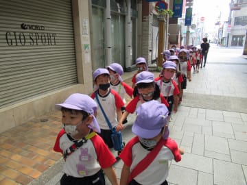 6月10日の「時の記念日」にちなんで、色々な時計があることを知り、時計作りを通じて時間の大切さを感じた年長組でした。6月22日には園バスでアルネにある大型からくり時計を見に行き、からくり時計の仕掛けが動き始めるのをドキドキしながら待ち、興味深く見学することができました。時間を感じながら生活することの大切さも感じた体験でした。見学後は近くの公園でのびのびと遊び、帰りは歩いて園まで帰りました。