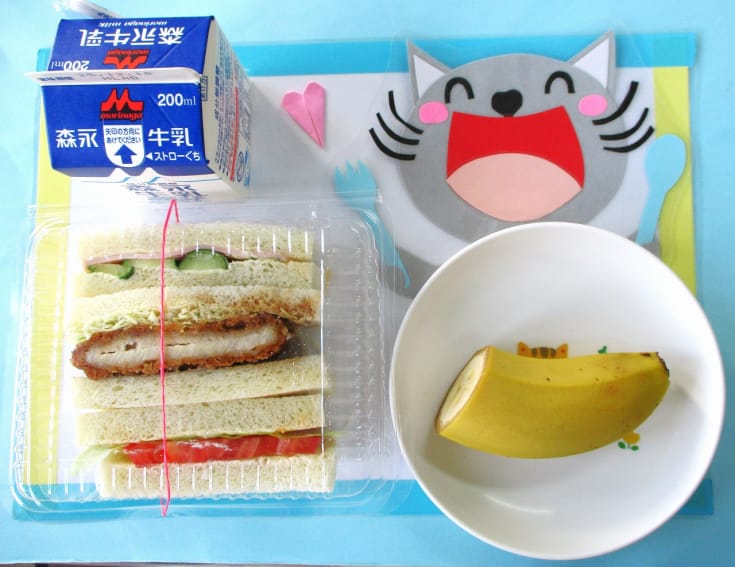 ・サンドイッチ(トンカツ・トマトレタス・ハムきゅうり)・バナナ・牛乳