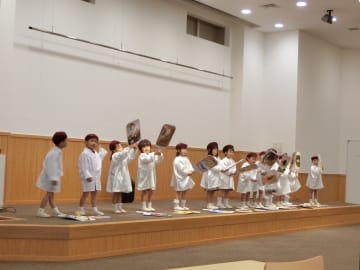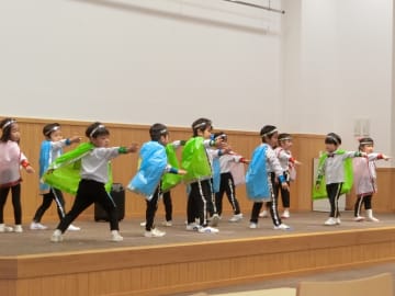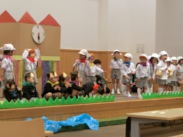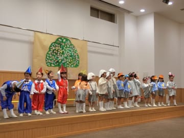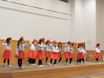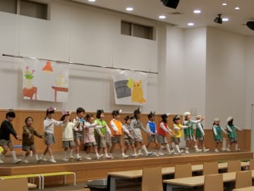 11月12日(金曜日)全学年時間差にて、美作大学100周年記念館で発表会を行いました。昨年はコロナウイルス感染症拡大防止のため、子ども達のみで幼稚園遊戯室で行いましたが、今年は感染予防に努めながら、保護者の方にも参加いただきみんなで楽しむことができました。どの学年も共通の目的を持って友だちや先生と協力し、表現する楽しさを味わいながら日々頑張ってきたことの発表ができました。