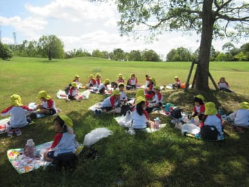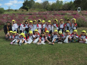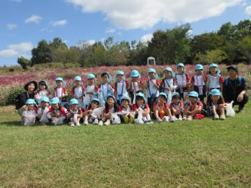 10月6日(金曜日)年中組が幼稚園バスに乗ってグリーンヒルズに秋の園外保育に出かけました。この日をとても楽しみにしていた子ども達。着いて早々、様々な種類のどんぐりや木の実、落ち葉などを見つけ喜んで拾いました。弁当を戸外で食べる経験もでき、手作りの弁当を嬉しそうに食べる姿が見られました。とても楽しく「もう帰るの?」と時間の経つのも早く感じるほどでした。秋の自然に親しみ、たくさん触れることもでき、良い1にちとなりました。