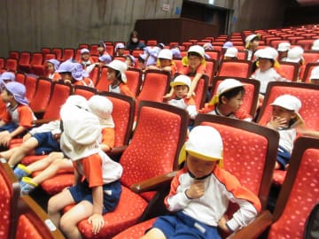 5月28日(火曜日)年長組が津山文化センターへ「すてきな3にんぐみ」の影絵を観に行きました。「影絵ってどんなのだろう?」とワクワクしながら幼稚園バスに乗車し出発しました。劇が始まり周りが暗くなると大興奮!きれいな色使いの影絵を楽しんだり、「にじ」や「ありがとうの花」など知っていた歌も流れ、みんなで歌って楽しむこともできました。