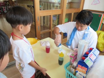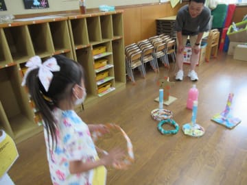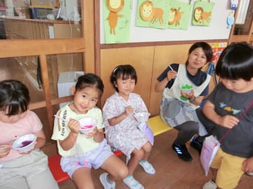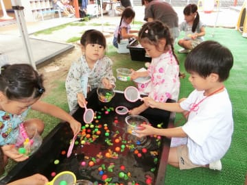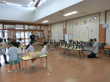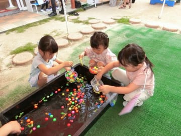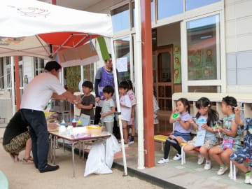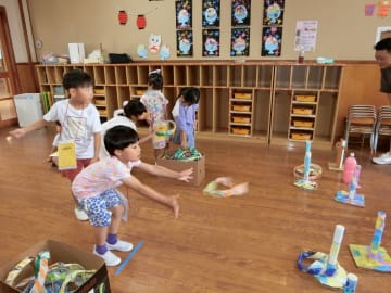 7月22日(月曜日)年長お楽しみ会を行いました。15時登園ということでいつもと違いドキドキわくわくをたくさんつめてきた年長組。今回のメイン活動は「縁日」。射的、輪投げ、ボウリング、スーパーボールすくい、かき氷と盛りだくさん!この日のためにたくさんの準備をしてきた子ども達でした。途中雨が降ってきましたが、子ども達の楽しみな気持ちは大きく、予定していた花火も行うこともできました。また、夜の幼稚園の探検も思い出の一つになったことと思います。今回は本園の保護者クラブの1つである「パパクラブ」の方々がお手伝い下さいました。ご多忙のところご参加ありがとうございました。