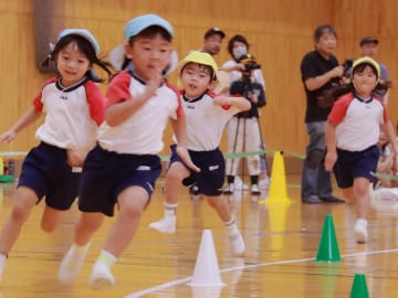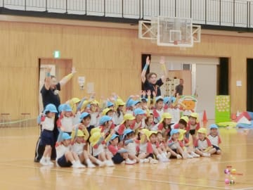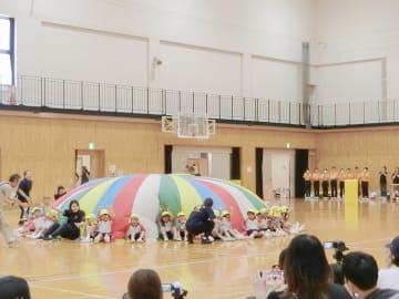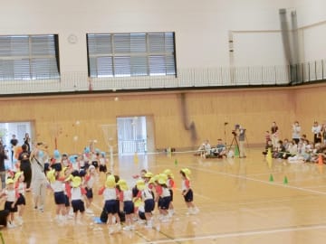 大学の体育館にて年中組の運動会を行いました。雨天のため大学の体育館での運動会でしたが、玉入れ・踊り・バルーン・かけっこを笑顔で披露しどの種目もたくさんの拍手をいただき、達成感や自信に満ちあふれた表情をしていた子ども達でした。年少組の時より1つ大きく成長した姿を見ることができた運動会でした。