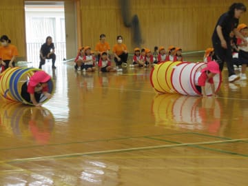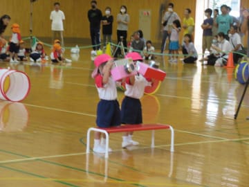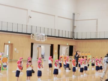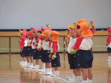 みんなで一緒に並んで歩いたり、踊ったり競技をしたりと幼稚園初めての運動会に挑戦した年少組。子ども達もよく耳にしている「ポポポポポーズ」の踊りはいろいろなポーズをしながらたのしく踊り、競技では子ども達がカメラマンになり撮影したり、ミマダインやミマッパちゃんとポーズを決めたりと、ドキドキしながらも楽しく運動会に参加することができました。たくさんの拍手にうれしい子ども達でした。
