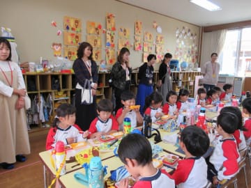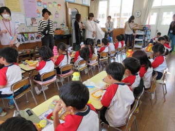 10月21日(月曜日)24日(木曜日)の2日間、今年度の年中組の給食試食会を行いました。子ども達の給食を食べる様子を見学後、保護者の方に試食をしていただきました。その後、管理栄養士より給食作りにあたって、野菜や噛み応えのあるものをしっかり取り入れたり、酢の味付けにもなれていくようにする等、色々な工夫を教えていただき、アンケートにも協力していただきました。食後はお茶を飲みながらの親睦会も行われました。皆様ご参加ありがとうございました。