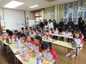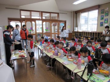 11月28日(木曜日)29日(金曜日)の両日、年長組の給食試食会が2日間38名の参加で実施されました。子ども達の給食時の様子の見学・食・管理栄養士からの説明やアドバイス・アンケートの協力・茶話会とクラス役員さんが中心となり、和やかな雰囲気の中で行うことができました。また。28日(木曜日)には年長児が厨房に行き、お礼のメッセージカードをプレゼントし調理員の皆様に感謝の気持ちを伝えました。