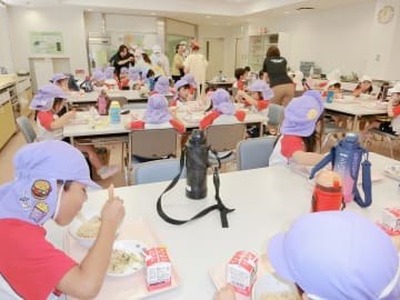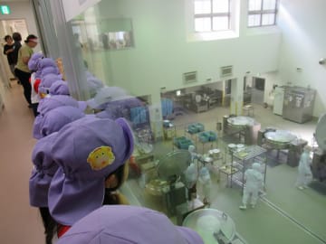 10月1日(水曜日)年長組が戸島学校給食センターへ出かけました。厨房の見学・給食に関するクイズ・試食を初めての場所でわくわくしながら体験させていただきました。大勢の給食を一生懸命作って下さる様子を見て「残さず食べる!」という声も聞かれました。この日のメニューは子ども達の大好きな塩ラーメンで喜んでいただきました。栄養を考えた献立作成や調理をして下さっていることを知り、感謝の気持ちを持つきっかけとなった年長児でした。