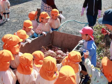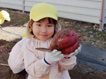 10月24日(金曜日)幼稚園の「なかよし農園」で学年ごとに芋掘りを楽しみました。暑い夏を越したさつま芋は一株ごとに大きな大きな芋が入っており、友だちと力を合わせて掘り出す子ども達もいました。収穫したさつま芋は給食の献立にこれから次々と活用され、楽しみにしている子ども達です。