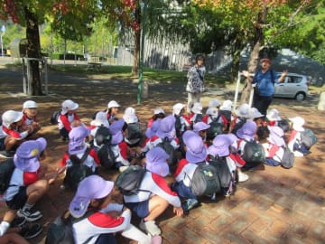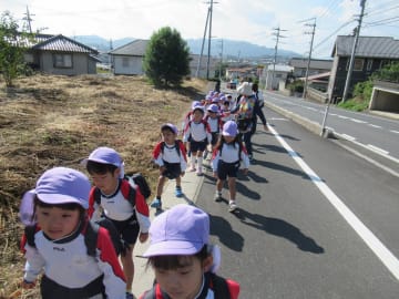10月27日(月曜日)年長組が幼稚園からグリーンヒルズリージョンセンターまで2.7km歩く、チャレンジウオーキングに挑戦しました。最後まで歩けるか不安に感じている子ども達もいましたが、出発前には「楽しみだね!」という声もあり、張り切って出発しました。後半くじけそうになる時もありましたが、友だちが手をつないでくれたり励ましあったりしながら、全員で歩ききることができました。到着後はおやつを食べたり、賞状を受け取ったりして達成感を味わうこともできました。自分の力で歩けたことを自信に変えてこれからの園生活も頑張っていきたいです。