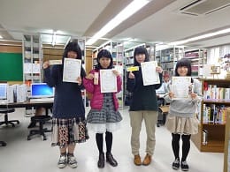 11月2日(月)、しおりコンクールの表彰式が開催されました。 応募枚数 23枚 投票数 2,045票 の結果、最優秀賞1名、優秀賞1名、佳作2名が入選しました。 ご応募いただいた皆様、ご投票いただいた皆様、ありがとうございました。