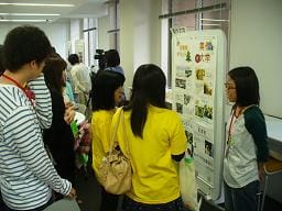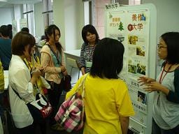 平成25年9月5日(木)~6日(金)、島根大学にて第3回大学図書館学生協働交流シンポジウムが行われ、本学図書館ボランティアの学生3名が参加しました。 本学図書館ボランティアの活動についてのポスター発表を行い、ブックハンティングなど図書館ボランティアの活動を知ってもらうとともに、他大学の学生たちとの交流を深めました。