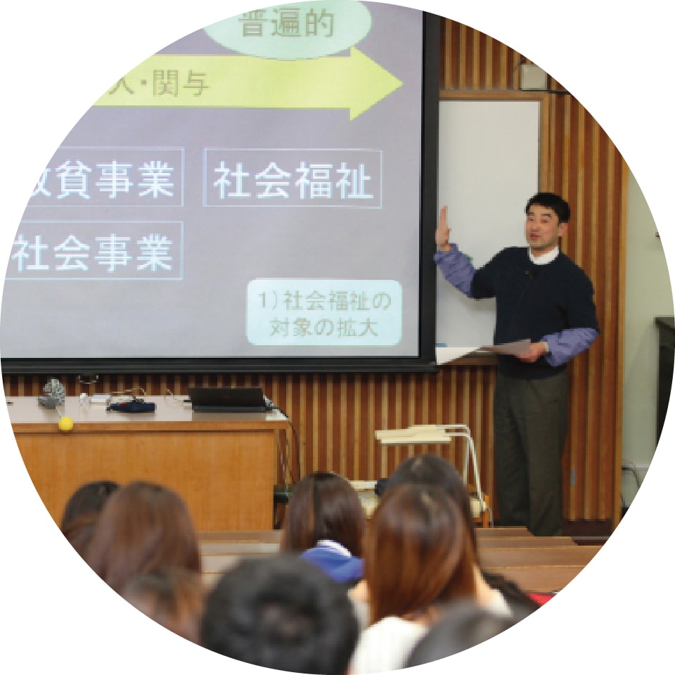 すべての子どもは快適な生活や人格形成に配慮される必要があります。本講義では子ども家庭福祉の思想や理念、基本原理、法律・制度、援助対象と援助の視点などについて、現実に即しながら幅広く学びます。また、子どもと福祉をめぐる歴史的な経緯をたどりながら、現在の問題をより広い視点から捉え、解決に向けた方策について自らの考えを持てるようになることをめざします。(蜂谷俊隆/教授)