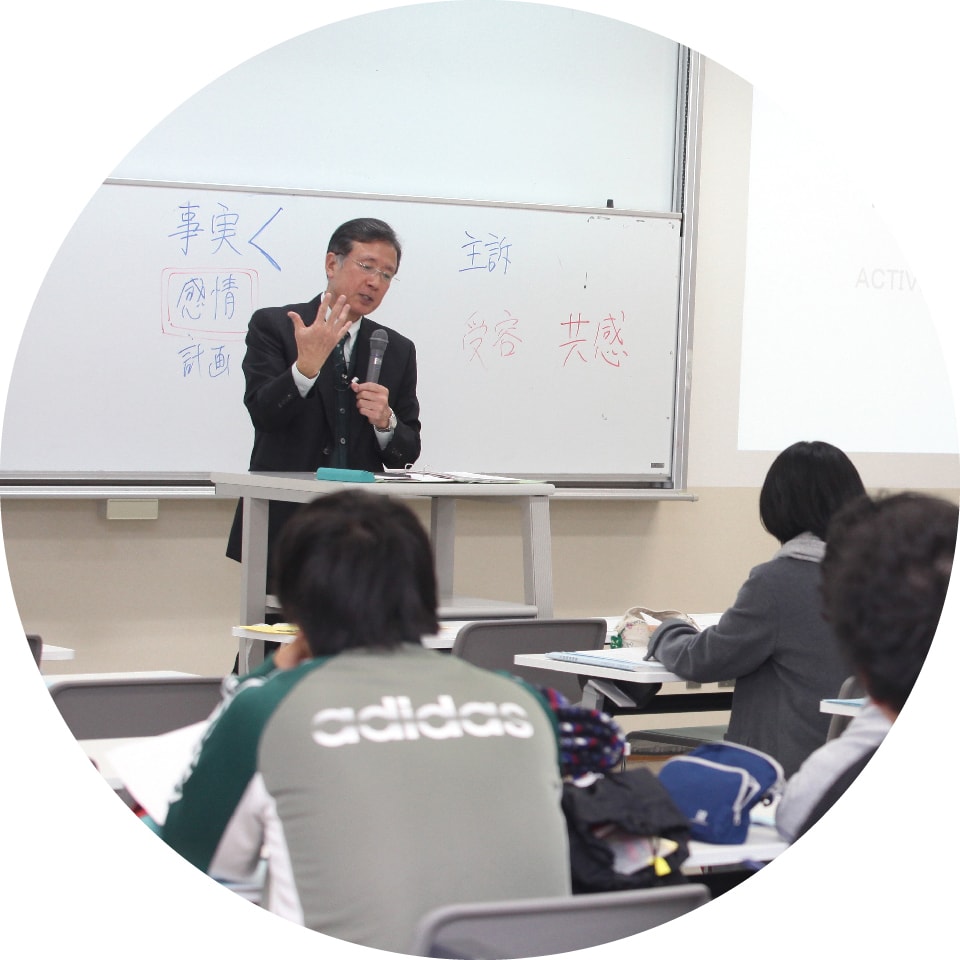 また、見学実習の他にも、教員採用試験や公務員試験に必要な一般教養に関する授業を受けたり、元教員の先生方・試験に合格した先輩達の講話を聞いたりするなど、様々な活動が行われています。