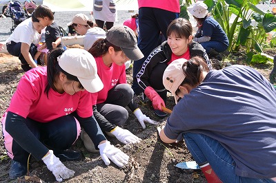 児童学科幼保コースの学生が子どもたちとサツマイモ掘りを実施
