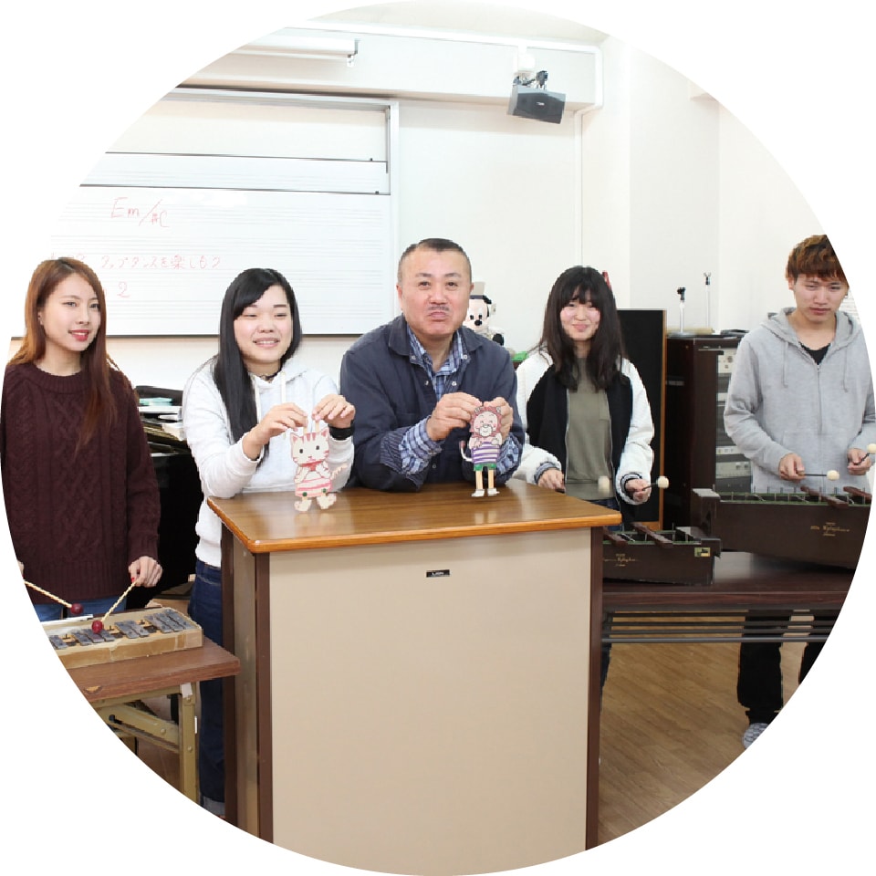 そこで、幼児教育学科では、子どもたちのすこやかな成長を支援できるような知識や技能を体験的に学ぶことができるように、充実したカリキュラムを整えています。例えば、附属幼稚園や津山市内の協力保育園など、子どもたちといつでもふれあいを持つことができる環境が身近にあるので、講義で学んだことを体験を通して確かめ、より一層学びを深めることができます。活字や言葉による知識だけではなく、自分自身の体験を通して学んだことは、「活きた教育」として、自らの力となり、自信を持って現場で活かすことができます。