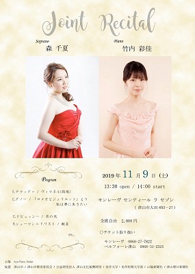 【11月9日(土曜)】竹内彩佳先生がピアノリサイタルを開催します