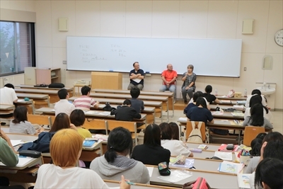 福祉の現場で働く卒業生らから現場の話を聞く講義が行われました