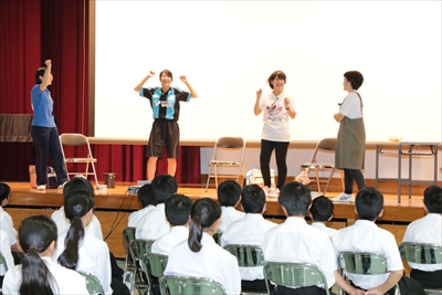 犯罪者被害支援を研究するゼミの学生が、中学校に寸劇を披露しました